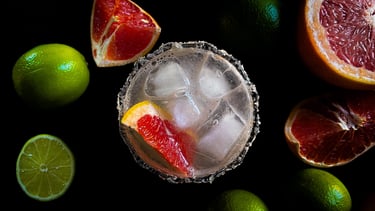 Greipfruto skiltele suvilgykite stiklinės kraštelį ir padenkite jį rūkyta MALDON jūros druska.