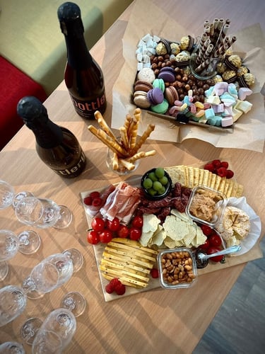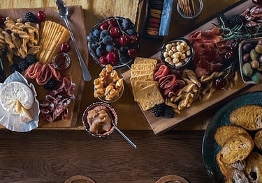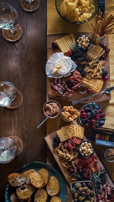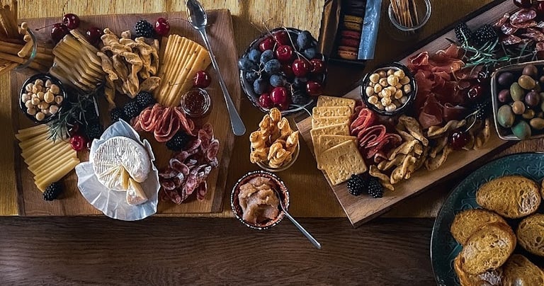 Užkandžių lentos ir stalai namų šventei arba dėžutė spontaniškam pasimatymui gamtoje.